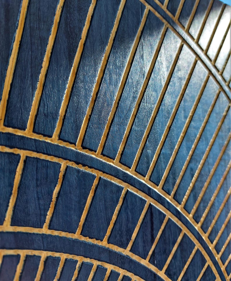 Crafted from natural wood and treated with premium oils in contrasting tones, this piece adds both visual rhythm and warmth to any space.